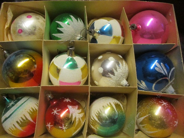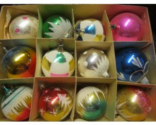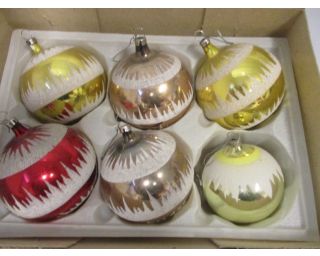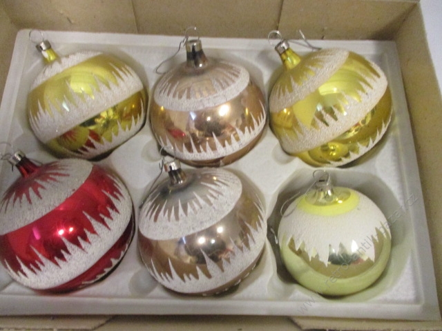 Retro baňky, vánoční ozdoby, retro rozbitné baňky - 6 kusů
