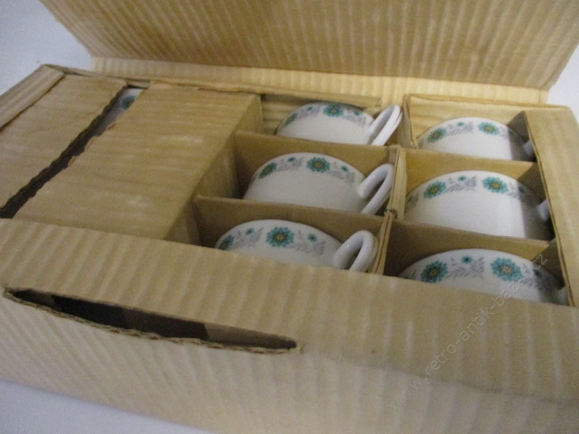 Retro hrnek, sada, nepoužité, značeno - vyfoceno, výška velikost hrníčku je 5,5 cm, vše v původním balení, nepoužité!!