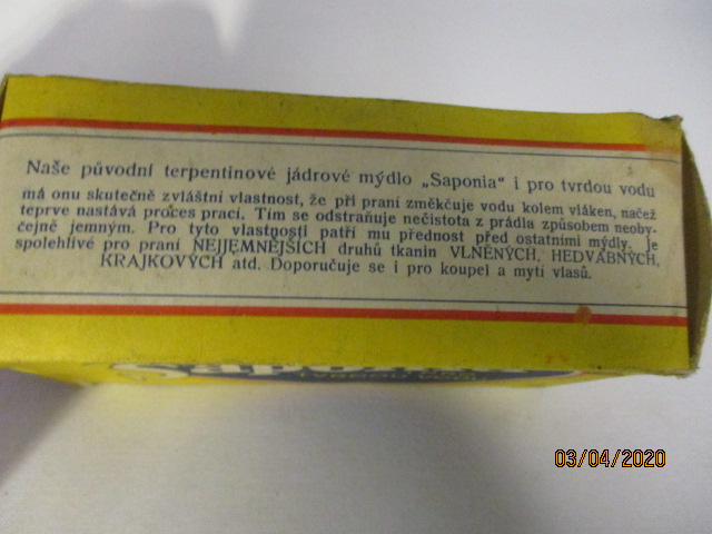 Retro mýdlo Saponia, sběratelství - kolem roku 1935 - v původní krabičce o rozměrech 7x14cm