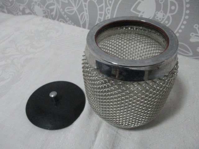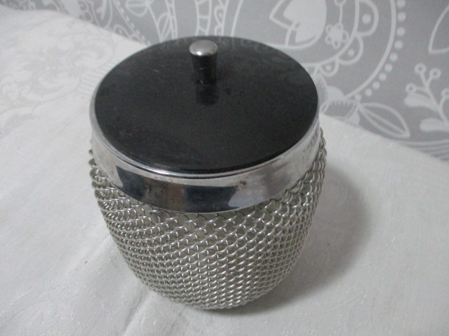 Retro nádoba na led, opletená - opletení stříbrné barvy, výška nádoby 14cm, průměr 12cm - dobrý stav