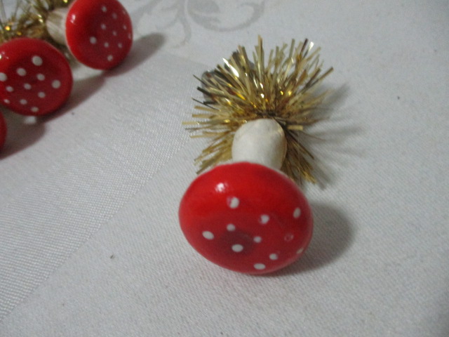 Retro ozdoby na vánoční stromeček, muchomůrka - 6 kusů