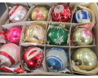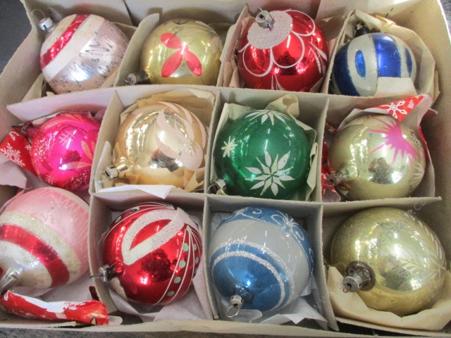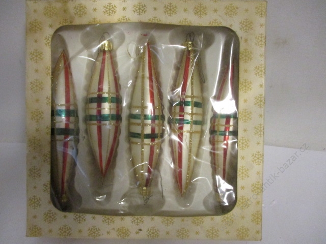 Retro podlouhlé baňky - 5 kusů. Krásné retro baňky dlouhé 14 cm. V původním balení.