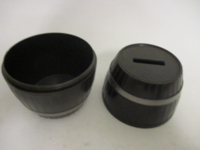 Retro pokladnička, bakelit, soudek - černé barvy, rozměry: výška 9 cm, průměr, vrchní, spodní strana 5 cm - výrobce SMĚR, značeno