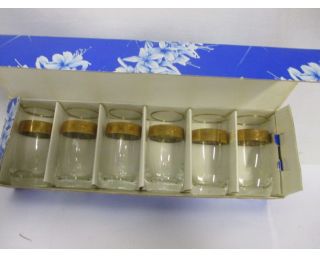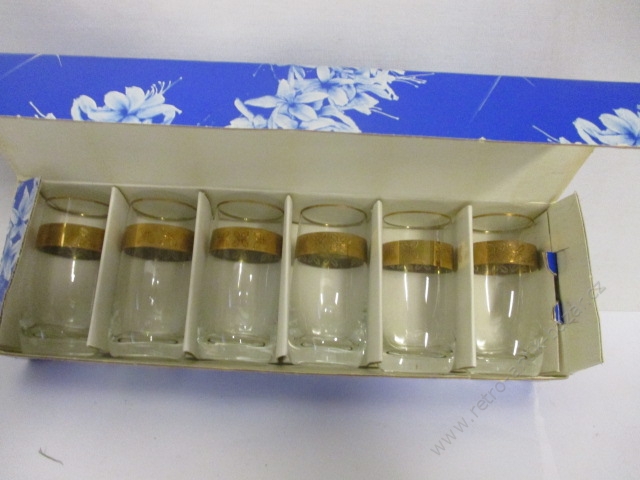 Retro skleničky na likér. Výrobce Středoslov. sklárny, Poltar Trnava. Velikost skleniček 9 cm. V původním balení, nové, nepoužité.