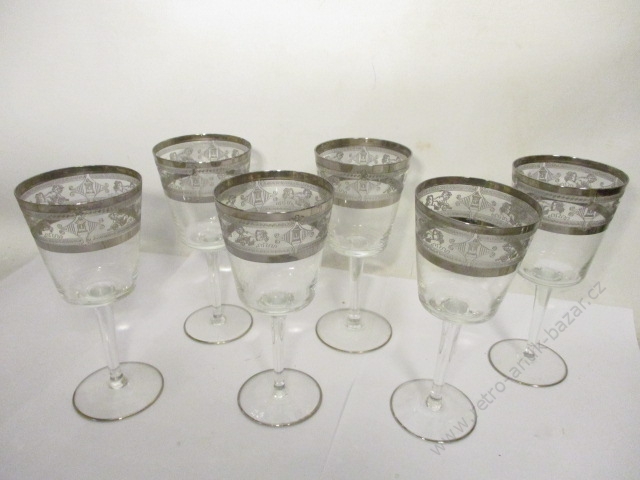 Retro skleničky na víno - 6 kusů, krásná sada!