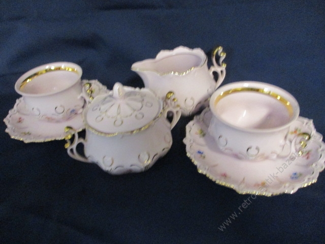 Růžový porcelán - cukřenka, dóza, šperkovnice