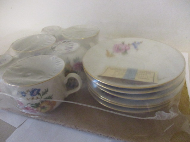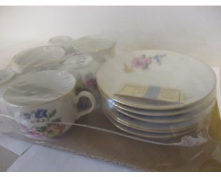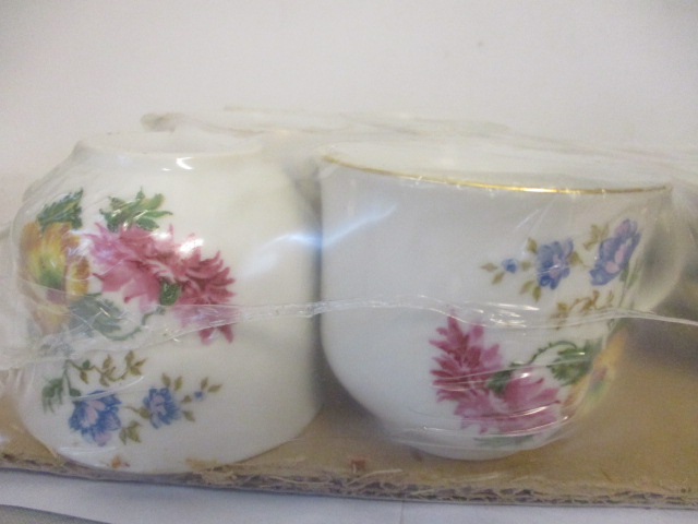 Sada hrníčky Angelina Thun, v původním balení, nové!!! - nerozbaleno ještě s výrobním lístkem-vyfoceno - Karlovarský porcelán, n. p. Stará Role, tercie Klášterec, talířek má průměr 14cm, hrníček s květy: výška 6,5, průměr 8cm, dobrý stav
