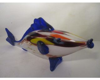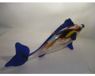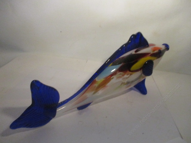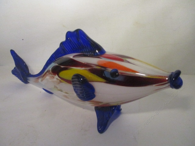 Skleněná ryba z hutního skla, retro ryba ze skla, ruční práce. Krásné jemné barvy. Délka 37 cm, výška 16. Bez poškození!