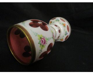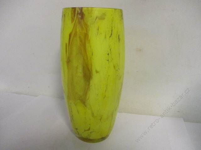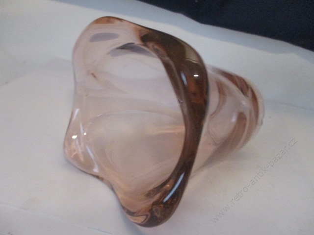 Velmi mohutná váza vyrobena z dvoubarevného skla. Bílé sklo je jakoby vrstevné.