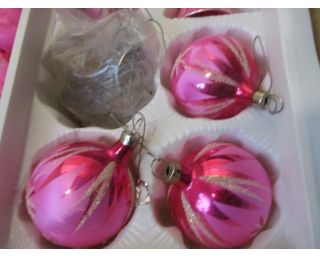- Vánoční tématika Skleněné baňky na vánoční stromeček, růžové baňky + špice, háčky, 19ks