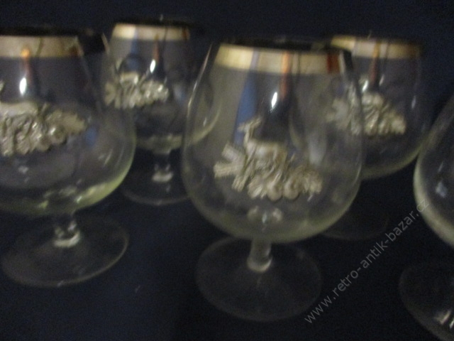 Skleničky s motivem jelena - 6 kusů. Jedná se o tzv. "napoleonky". Velikost 12 cm. Retro, vkusné, jedinečné nejen pro myslivce nebo milovníky lesa a přírody...