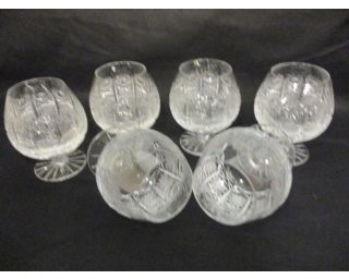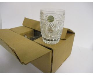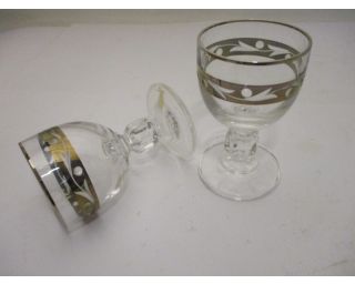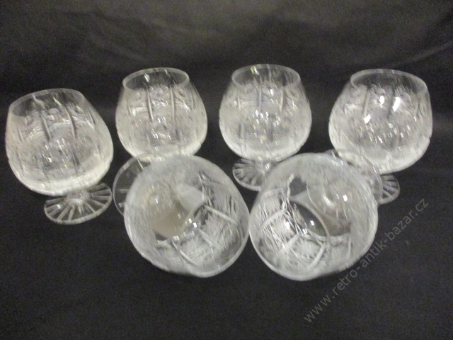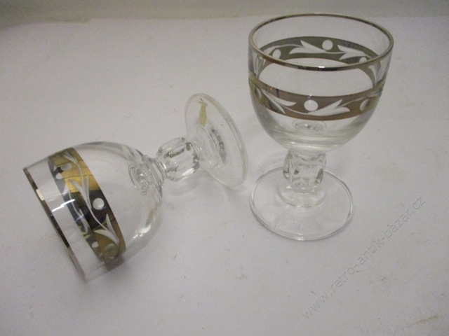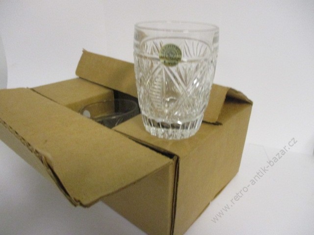Skleničky, štamprle na silné stopce. Výška 8,5, 6 kusů. Krásné zdobení-výbrus. V původním balení.