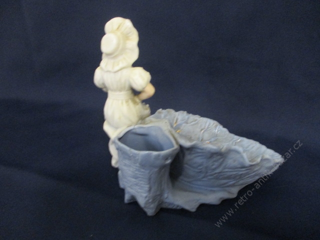 Soška dívky, stará soška, vázička, starožitnost, sběratelství, značeno