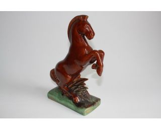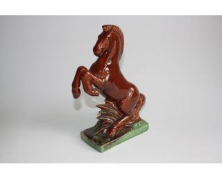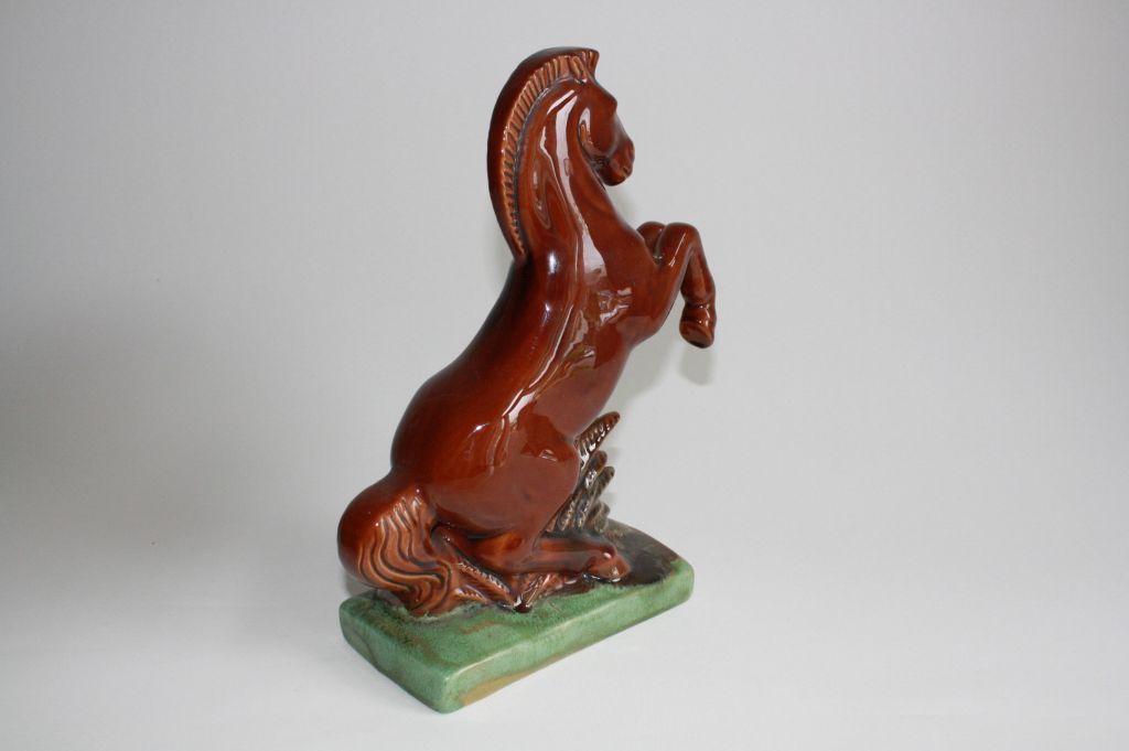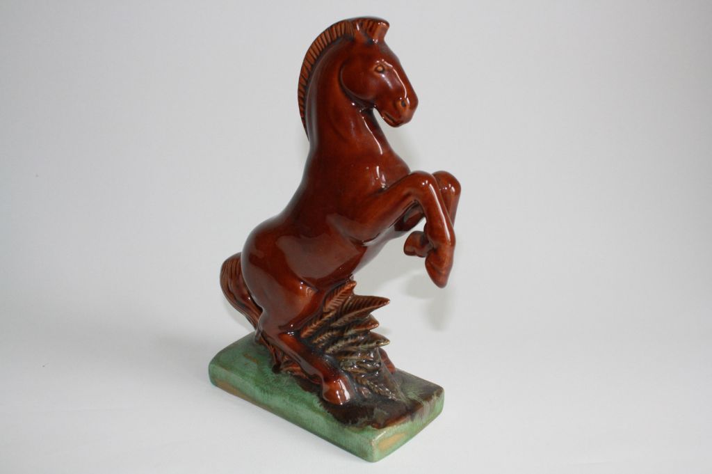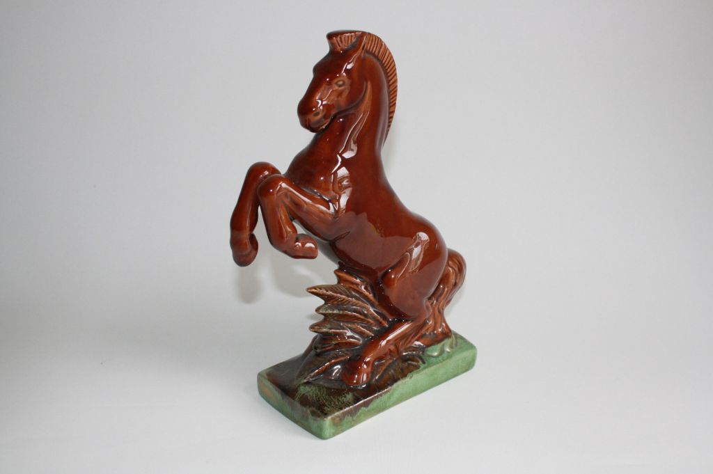 Soška koně stojícího na zadních nohách. Vyrobila keramická dílna Beroun.