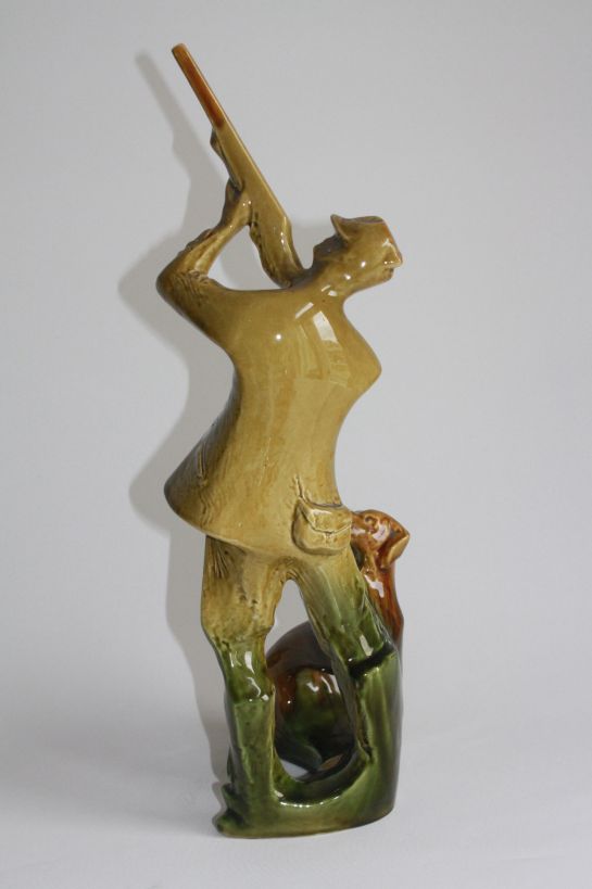 Soška myslivce s loveckým psem, Výrobce Bechyně, Czechoslovakia.