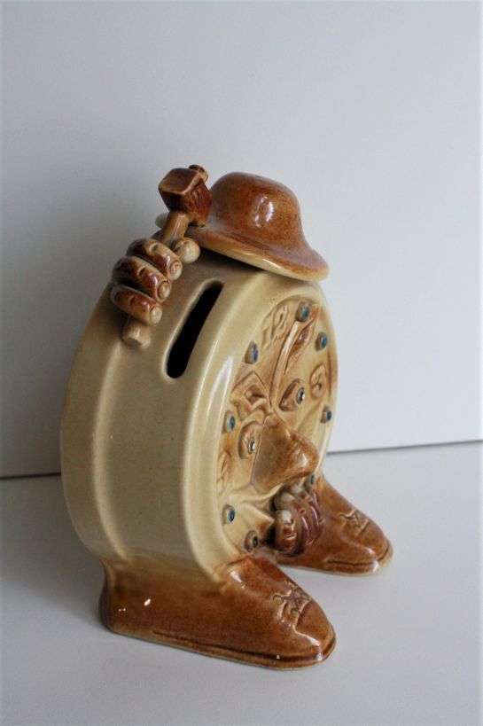 Soška a zároveň pokladnička v podobě budíku. Soška je v perfektním stavu. Ideální pro hodináře na důchod.