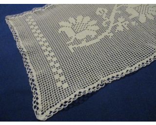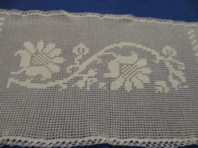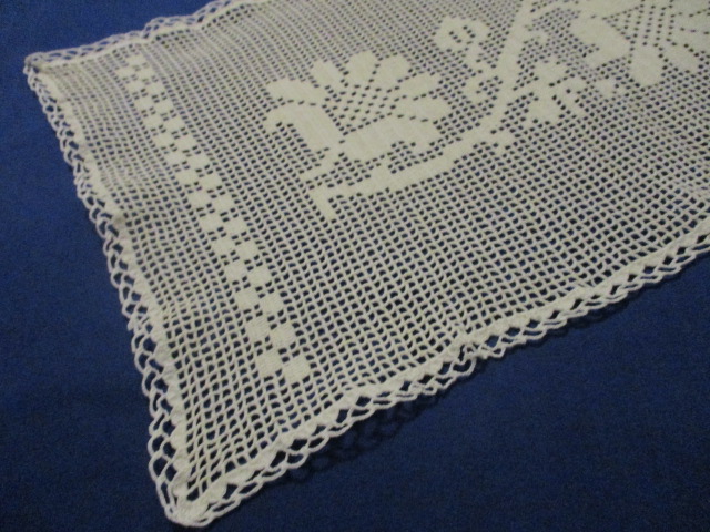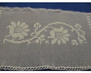 Stará háčkovaná výšivka, dečka - bílá barva, rozměry: 26 x 48cm - krásná ruční práce