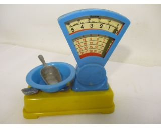 Stará panenka o velikosti 15 cm, na zadní straně vyraženo číslo 664? + plastové retro váhy s lopatkou. Rozměry vah: 12x14cm. Pěkný stav.