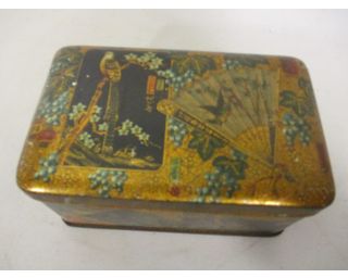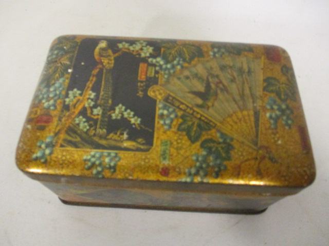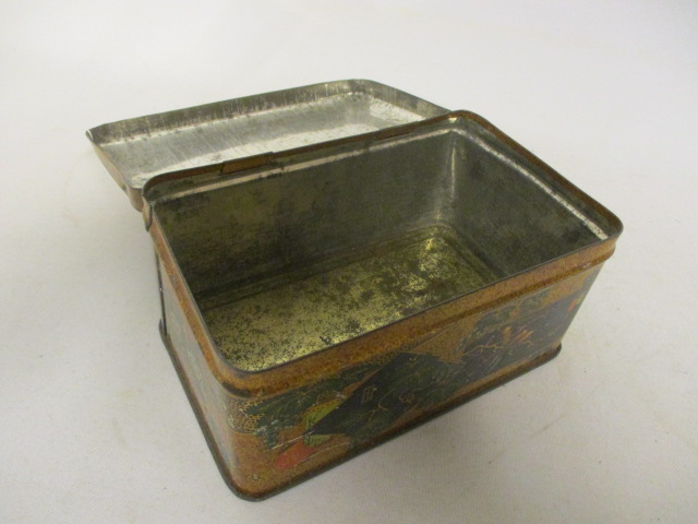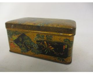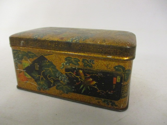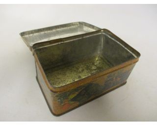 Stará plechovka, sběratelství - rozměry: 15x9x7,5 cm - pěkná zajímavá barevná kresba
