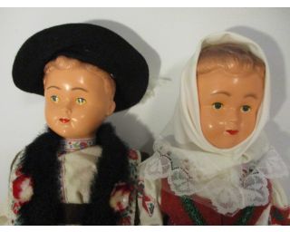 Stará sběratelská panenka - Tatranský pár - výrobce: Lidová tvorba Uherský Brod, vyrobeno: 28. 11. 1983 Made in Czechoslovakia, v původním balení - velikost postav je 31 cm - hlavičky z celuloidu, roce, tělíčko plast - krásný nepoškozený kroj - sběratelský kus