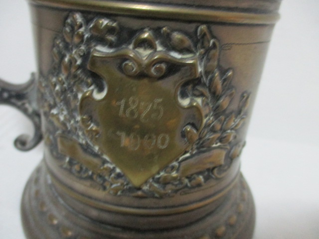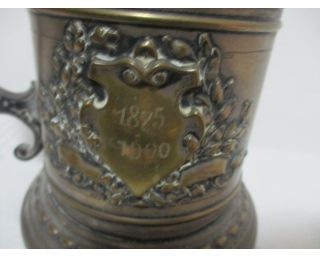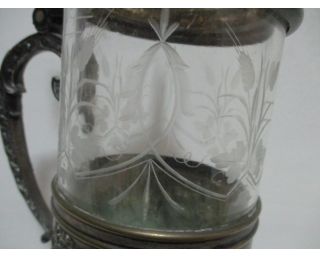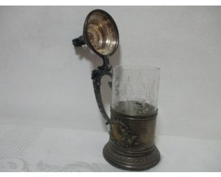 Stará sklenice na pivo s kovovým deklem, sběratelství - celková velikost je 26 cm, bez víka 16, 5 cm, průměr sklenice je 8 cm - nádherné zdobení, krásná práce...