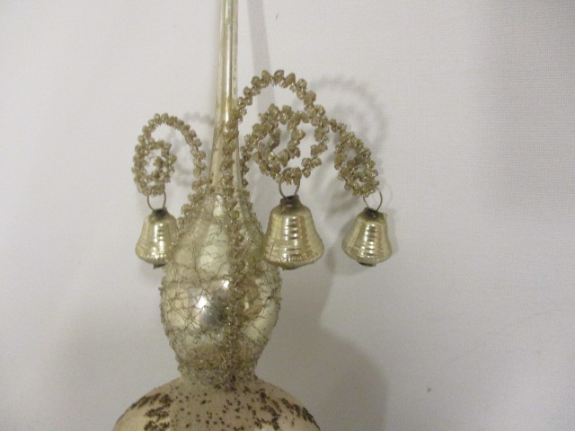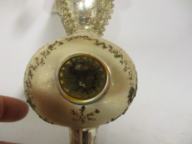 Stará špice na stromeček - IRISA - velikost 28 cm, výrobce Výrobní družstvo Vsetín - opravdu nádherná, ale tam, kde je tmavé místo na fotografii poškození