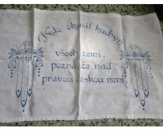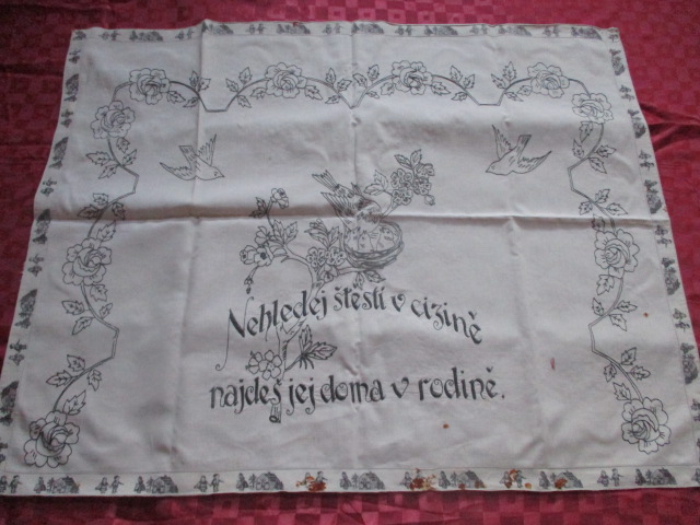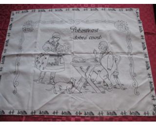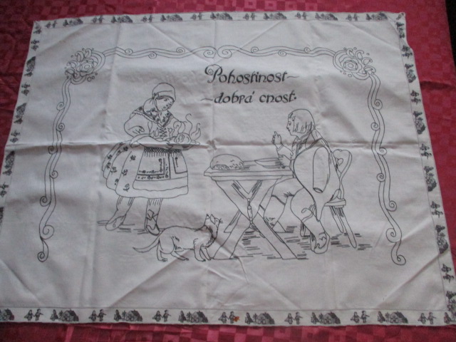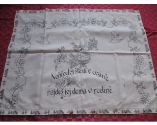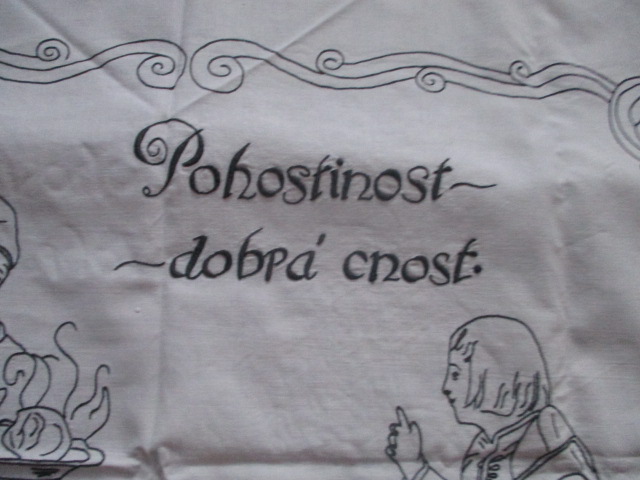 - Háčkované a vyšívané ubrusy a dečky Stará výšivka na zeď, výšivka "Pohostinnost - dobrá cnost"