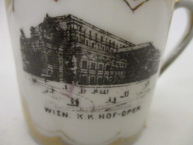 Starý hrníček - Wien, Vídeň - značeno - K. K. Hof - OPER - výška je 5, 5 cm, průměr 5cm - bez poškození