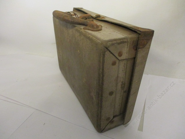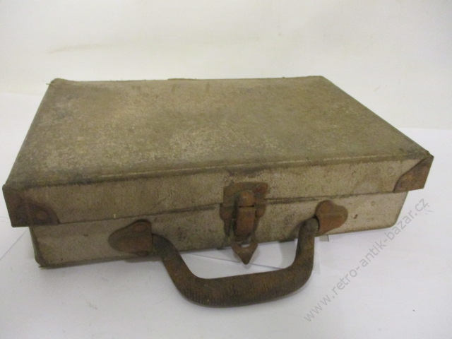 Starý kufřík + staré plechovky - IDOL, průměr 6,5cm MILENA průměr 5 cm, , TAGAL průměr 7,5 cm, IGACID velikost 6cm. Kufr je úžasný!!, propracovaný - viz foto, rozměry: 23x16cm