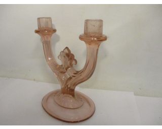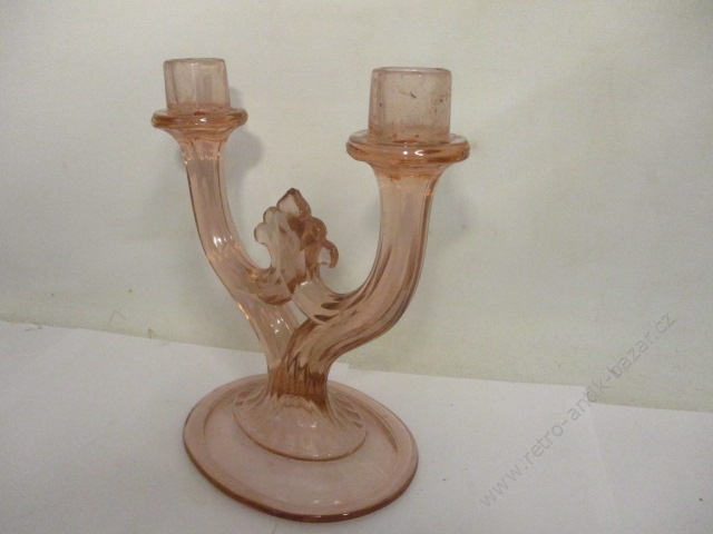 Svícen ze skla, retro svícen - růžové sklo, výška 21 cm, šířka 18 cm, pěkný stav...