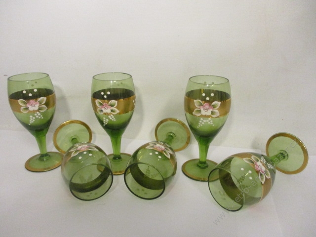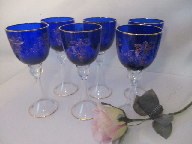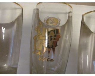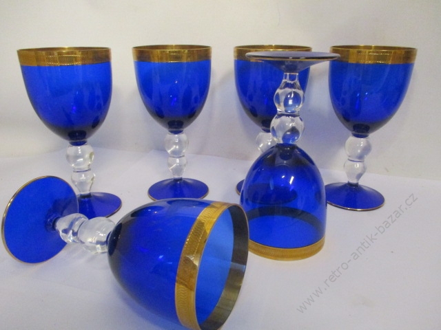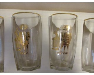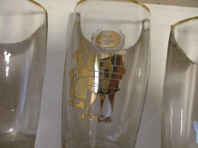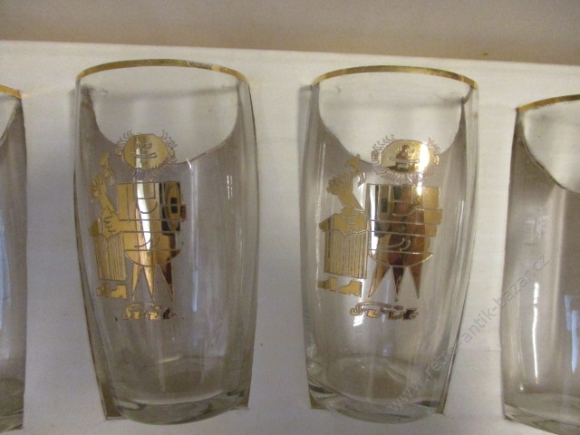 SVIT, Zlín, Gottwaldov, retro skleničky - 6 kusů v původním balení, velikost skleničky je 9 cm, zlaté vyobrazení ševce na každé skleničce, nové, zdá se nepoužité