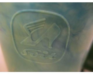 Tři reklamní botečky Svit. Zelená, žlutá a modrá žíhaná. Výška 10cm, hloubka 9cm. Na každé znak SVIT. Dobrý stav