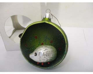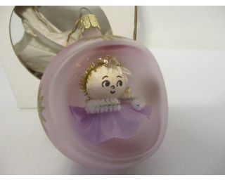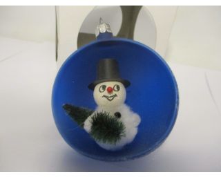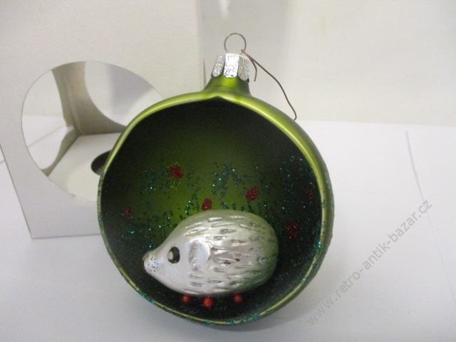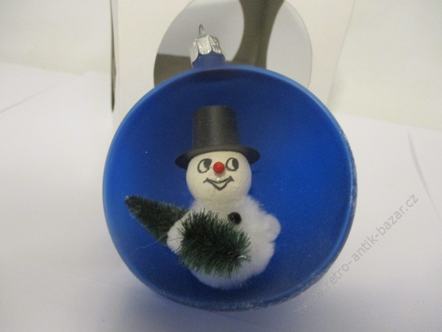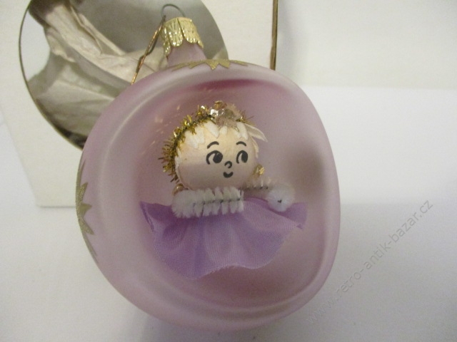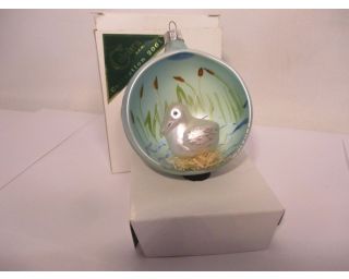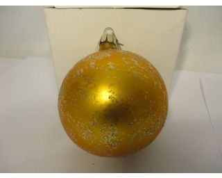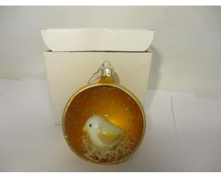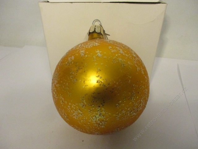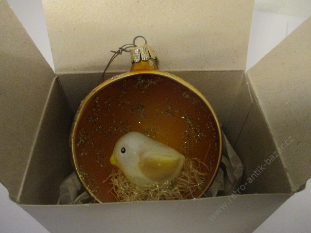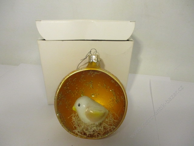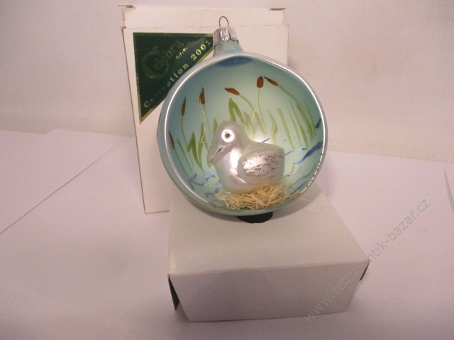 Vánoční baňka - s labutí (žlutá) - průměr baňky 7,5 cm, v původním balení, výrobce Celebra - výrobce foukaných ručně dekorativních vánočních ozdob ze skla