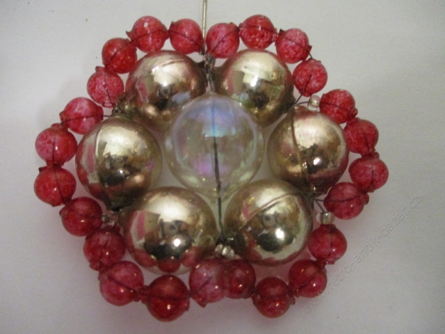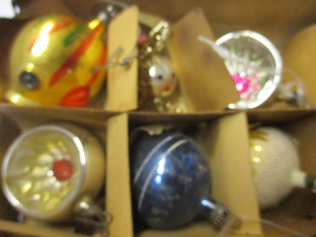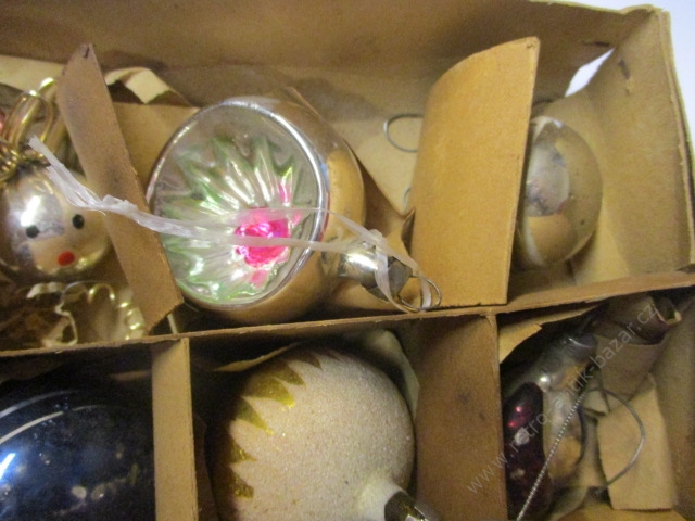 Vánoční baňky, retro ozdoba, hodně staré, krásné - 13 kusů - největší má průměr 5cm, krabice původní není