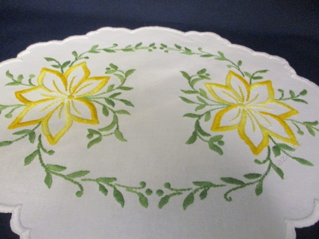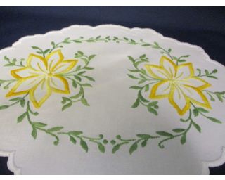 Vyšívaná dečka se žlutými květy, retro výšivka. Rozměry: 28 x 36 cm. Krásná, jarní....