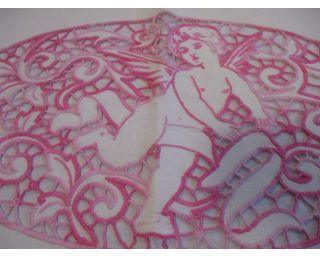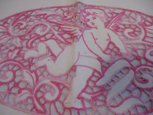 Vyšívaný polštář s andělem, retro polštář. Rozměry polštáře: 852x40cm. Růžová výšivka na bílém plátně. Krásná práce!!
