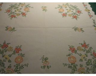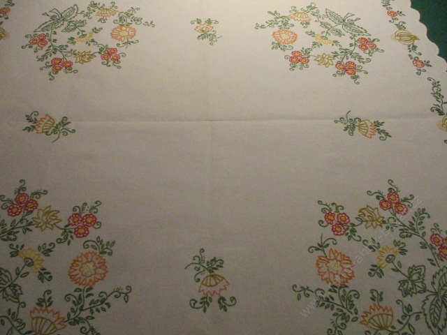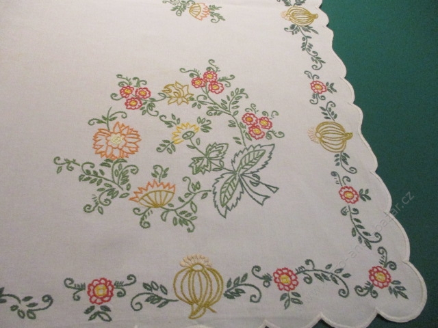 - Háčkované a vyšívané ubrusy a dečky Vyšívaný ubrus, retro, čtverec