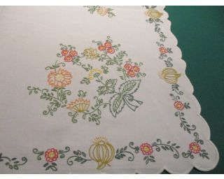 Vyšívaný ubrus, retro, čtverec. Barevná výšivka květin na bílém plátně. Lidový vzor. Rozměry: 34x86.