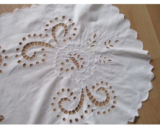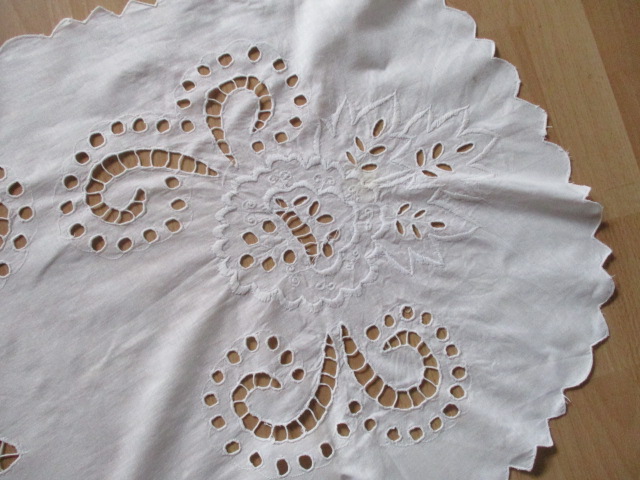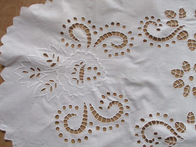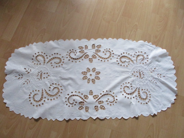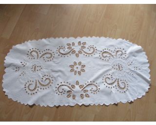 Vyšívaný ubrus, stará výšivka, ovál - rozměr: 108 x 50 - opravdu krásná stará výšivka - nálezový stav