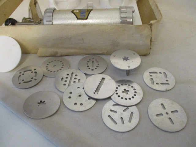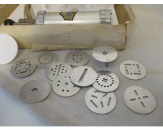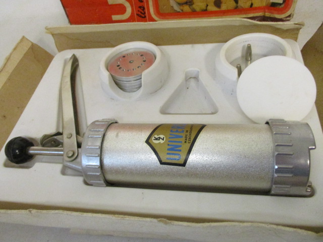 Zdobička na dorty studené mísy a pečivo - UNIVERSAL, retro sada - výrobce: Závody SEMILY Roztoky u Jilemnice, Made in Czechoslovakia - Rozměry krabice: 22x28cm, krabice původní, špatnější, lepená, natržená v rozích